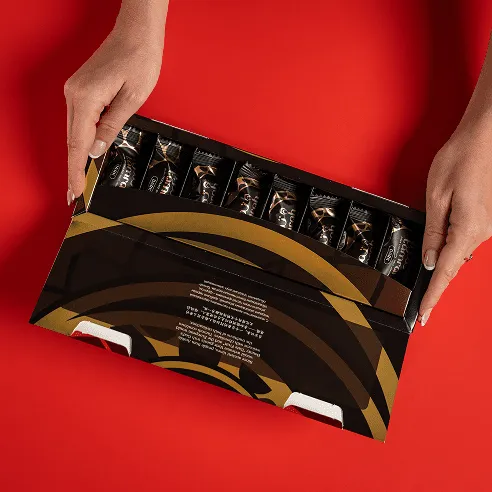 Each gift box contains a selection of dark chocolate treats sealed for ultimate freshness and flavor.